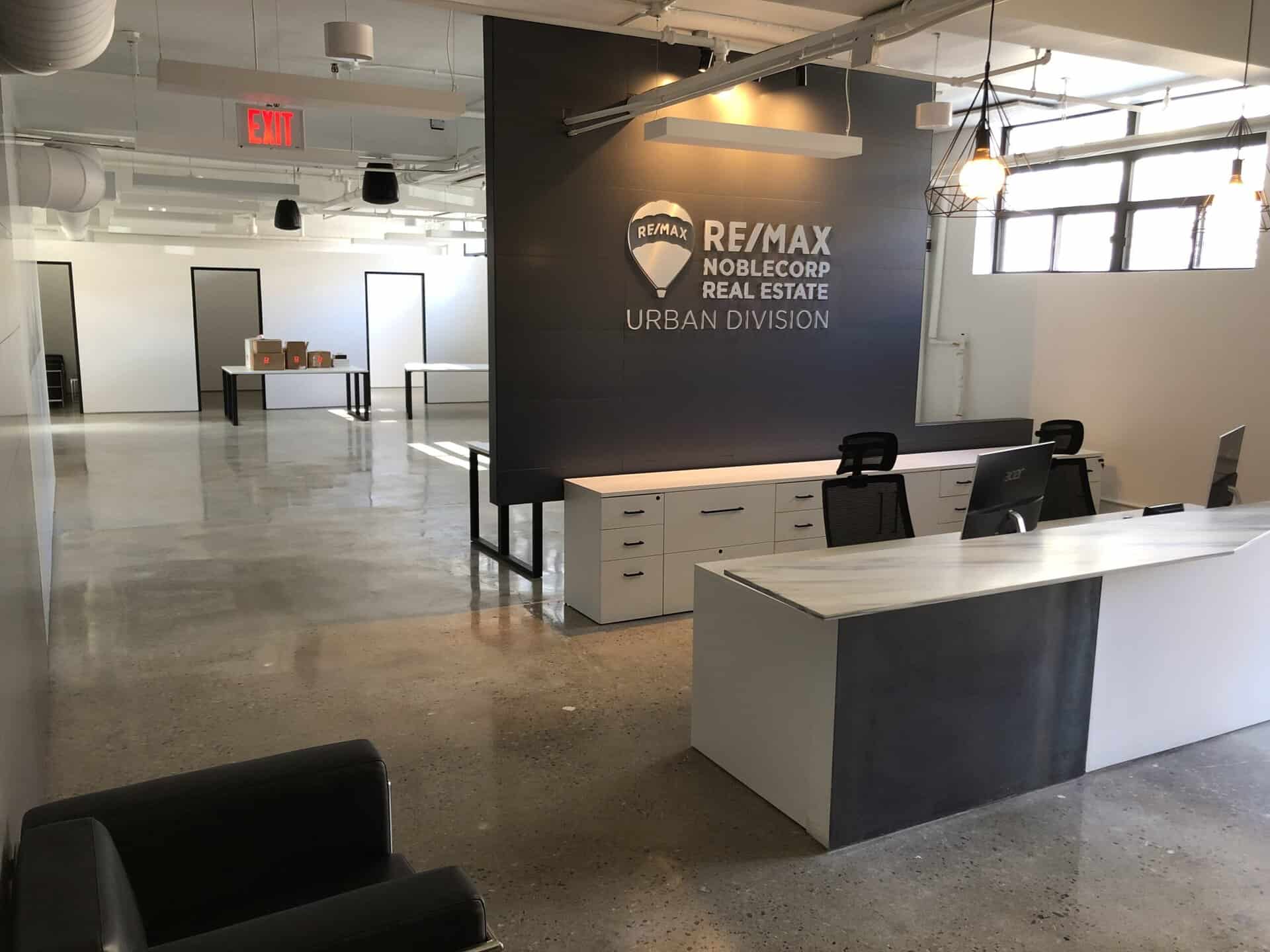 V2R Group led the full design-build delivery of this 2,900 sq. ft. RE/MAX office transformation, executed in just 8 weeks. The project combined high-end architectural finishes with advanced workplace technologies to create a modern, brand-aligned space that supports both client engagement and daily operations.